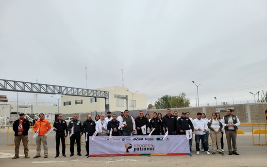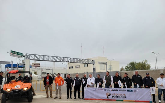 Ciudad Acuña, Coahuila. 28 de noviembre del 2025.- En la entrada de la aduana de esta frontera, los representantes de diversas dependencias de los tres órdenes de gobierno dieron el banderazo de inicio del programa “Héroes Paisanos” 2025/2026 que se realizará del 28 de noviembre de este año y hasta el 8 de enero del 2026.