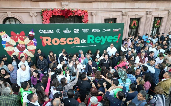 Saltillo, Coahuila de Zaragoza; a 06 de enero de 2026.- Desde la capital del Estado, el gobernador Manolo Jiménez Salinas, junto a su esposa Paola Rodríguez López, presidenta honoraria de Inspira Coahuila, partieron y repartieron entre miles de coahuilenses la tradicional Rosca de Reyes, evento con el que finalizan las actividades de Villamagia en todo el estado, y a donde acudieron esta temporada más de un millón de visitantes en todas sus sedes.