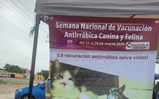 Ciudad Acuña, Coahuila. 29 de marzo del 2026.- Jornada de vacunación y desparasitación en la Macroplaza por parte de la Clínica Veterinaria Chavarría, en coordinación con la Jurisdicción Sanitaria 02. Hoy domingo de las 9 de la mañana a la 1 de la tarde. Frente al puente peatonal. ¡No faltes! Es por la salud de tus mascotas. Y es completamente gratuita.