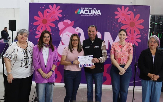 Ciudad Acuña, Coahuila. 09 de marzo del 2026.- El presidente municipal Lic. Emilio De Hoyos encabezó hoy el festejo y entrega de reconocimientos a destacadas mujeres de Centros Comunitarios.