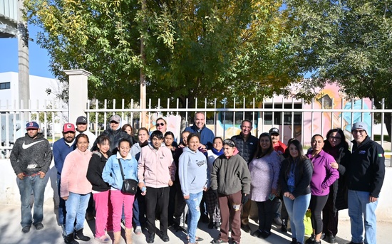 Junto a los regidores Luis Arturo Dávila Menchaca, Manuel Menchaca Flores, Saúl García Ibarra y Pedro Solís Valenzuela; del secretario técnico Héctor Eduardo Arocha Gómez, del director de Obras Públicas Carlos Humberto Flores Jiménez y de la coordinadora de Centros Comunitarios Lidia Martínez Blanco, hizo entrega de la obra.