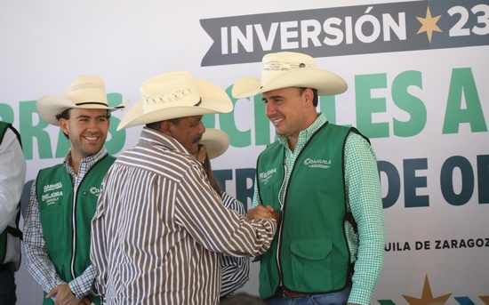 El coordinador general de Mejora Coahuila, Gabriel Elizondo Pérez, informó que en el municipio se invierten más de 23 millones de pesos, y anunció el arranque del pavimento de 22,900 metros cuadrados para los ejidos Agua de Mula, La Luz y Colón, con una inversión de 6 millones de pesos, dentro del programa “Obras Sociales a Pasos de Gigante”.