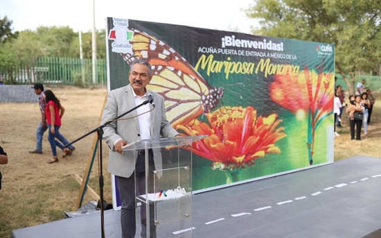 Además, en la develación de monumento a la mariposa monarca elaborado por el artista Hector Adolfo Barranco Sánchez. Monumento que, no solamente es una obra de arte sino un símbolo del papel crucial que juega Acuña en el corredor migratorio de la mariposa monarca.