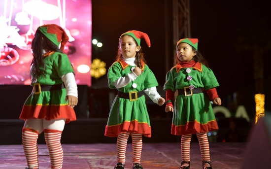En el show navideño participaron personajes como Santa Claus, duendes y el Grinch recordaron a los niños la importancia de obedecer a sus padres para recibir regalos de Navidad.