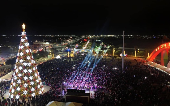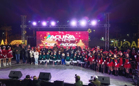 Ciuadad Acuña, Coahuila. 30 de noviembre de 2025.- Ante miles de familias reunidas en la macroplaza, el alcalde Emilio De Hoyos y la presidenta del Sistema DIF Yahaira Romero, presidieron espectáculo de Luz y Magia y el encendido del pino navideño de bienvenida a una de las épocas más bellas del año, las fiestas decembrinas 2025.