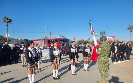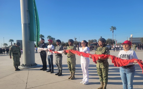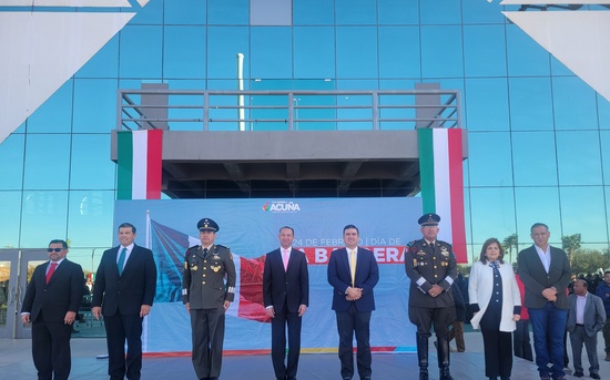 Ciudad Acuña, Coahuila. 24 de febrero del 2026.- El presidente municipal Lic. Emilio De Hoyos presidió la ceremonia cívica conmemorativa del Día de la Bandera Nacional, en la explanada de la Presidencia Municipal de Acuña.