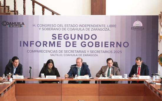 Saltillo, Coahuila de Zaragoza; a 04 de diciembre de 2025.– En el marco de la glosa del segundo informe de resultados del gobernador Manolo Jiménez Salinas, las y los titulares de las diversas secretarías que conforman su administración acudieron ante el Congreso del Estado para ampliar la información en cada uno de los diversos rubros, resaltando un ejercicio democrático y transparente ante el Poder Legislativo.