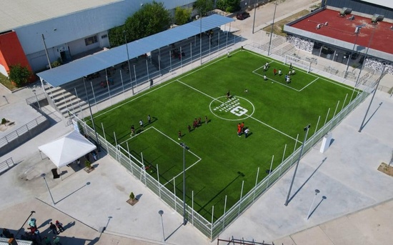 Proyecto deportivo que fue posible gracias a la aportación de 3 millones 290 mil 350 pesos de la Fundación Howmet Aeroespace de México y la canalización de 446 mil 282 pesos del Gobierno Municipal para la construcción de rampas de acceso, barda posterior y banquetas.