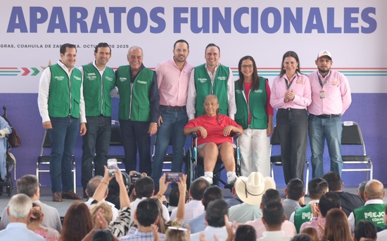 Piedras Negras, Coahuila de Zaragoza; a 14 de octubre de 2025.- Desde el municipio de Piedras Negras, el gobernador Manolo Jiménez Salinas detonó la entrega de mil aparatos funcionales para coahuilenses de las cinco regiones del estado, y destacó que en lo que va de su administración se han invertido, de manera extraordinaria, alrededor de mil millones de pesos en el tema de salud.