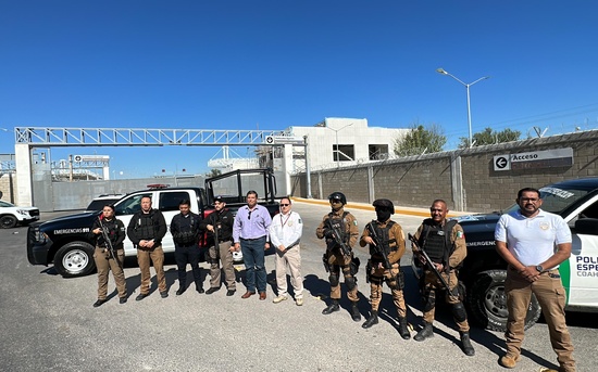 Acuña, Coah., 09 de oct. 2023. Derivado de las mesas de seguridad y de los acuerdos del mando conjunto, y para garantizar que prevalezcan las actividades económicas y de movilidad por esta vía de comunicación, se realizó simulacro de cierre por 25 minutos del puente internacional “Puerta México”, que comunica a Acuña con Del Río Texas.