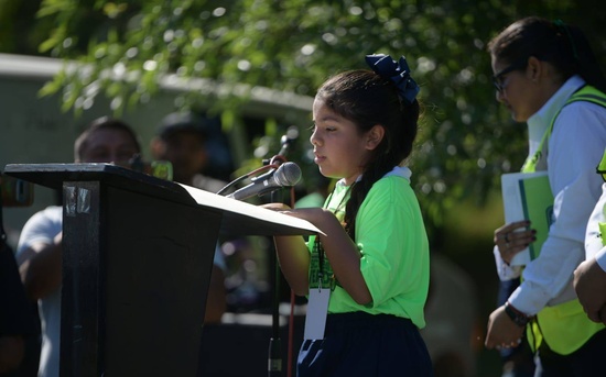 Por otra parte, la alumna Kendra Janeth De León Reyes, en representación de la comunidad estudiantil de la primaria Cuauhtémoc, agradeció al alcalde Emilio De Hoyos por su compromiso e impulso de programas que fomentan la conciencia ambiental en la comunidad.