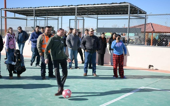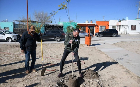 Como parte del recorrido por la plaza, el alcalde convivió con vecinos de la colonia y participó en un juego recreativo en la cancha junto a un niño del sector. Posteriormente, acompañado por el director de Fomento Agropecuario, Nabor Encinas, realizó la plantación de un árbol como acto simbólico de inauguración.