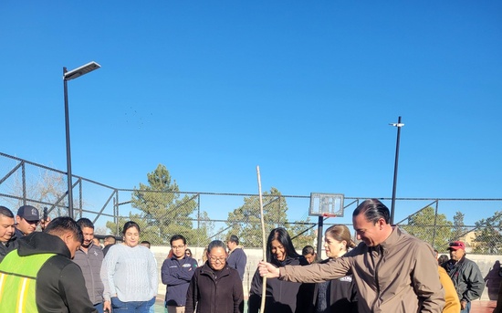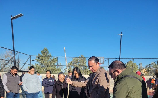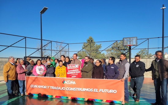 Ciudad Acuña, Coahuila. 06 de febrero del 2026.- Luego de ser remodelada y reforestada, hoy el presidente municipal Lic. Emilio De Hoyos, acompañado de vecinos del sector, cortó el listón inaugural de la plaza publica de la colonia Morelos.
