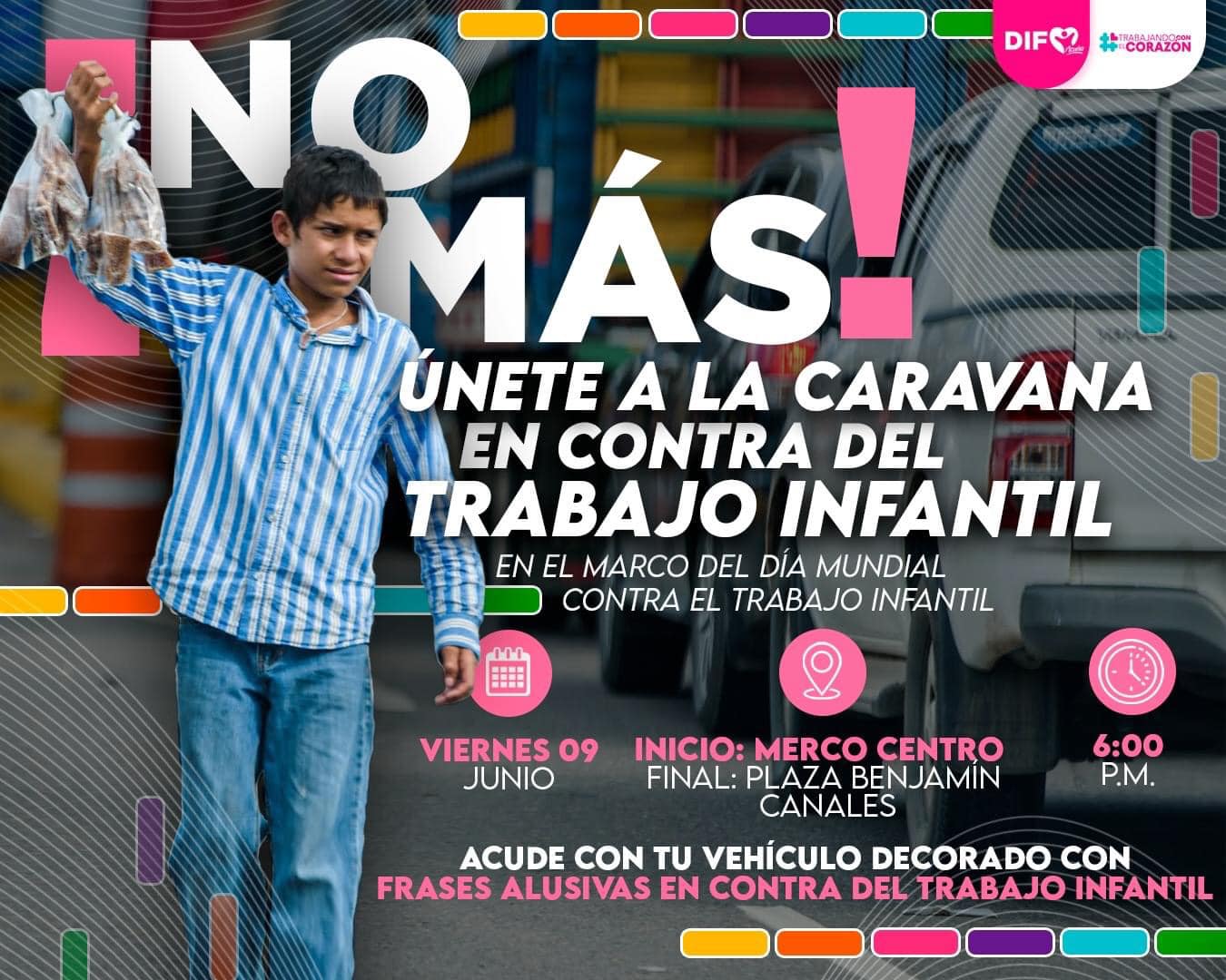 EL SISTEMA DIF Y LA PRONNIF CONVOCAN A PARTICIPAR EN CARAVANA EN CONTRA DEL TRABAJO Y EXPLOTACIÓN INFANTIL