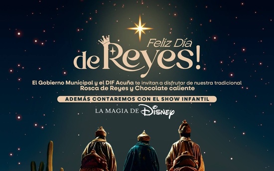 Ciudad Acuña, Coahuila. 05 de enero de 2026. – Con el objetivo de fortalecer la unidad familiar y preservar las tradiciones que dan identidad a la comunidad, el Gobierno Municipal de Acuña, en coordinación con el DIF Acuña, invita a todas las familias a participar en el tradicional Festejo del Día de Reyes, que se llevará a cabo este sábado 10 de enero a las 4:00 de la tarde en la Macroplaza Acuña.