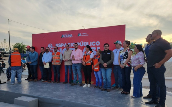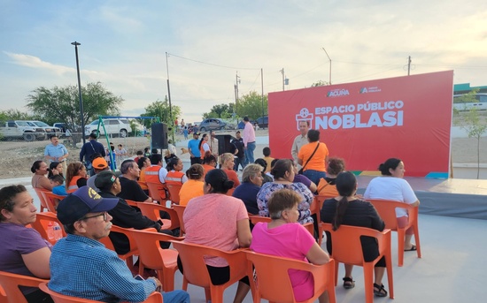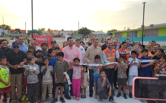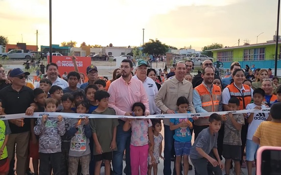 Ciudad Acuña, Coahuila. 23 de abril del 2026.- El presidente municipal Lic. Emilio De Hoyos encabezó hoy la entrega de área verde y canchas deportivas en el Fraccionamiento Noblassi II una sentida petición de los vecinos de ese sector.