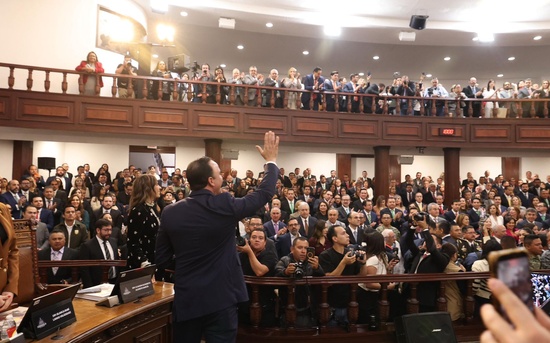 Saltillo, Coahuila de Zaragoza; a 24 de noviembre de 2025.- En Sesión Solemne celebrada en el Congreso del Estado, ante diputadas y diputados de la 63 Legislatura, el gobernador Manolo Jiménez Salinas rindió su segundo Informe de Resultados, desde donde convocó a las y los coahuilenses a seguir trabajando en unidad, a seguir trabajando en equipo, y a poner a Coahuila como el punto de encuentro.