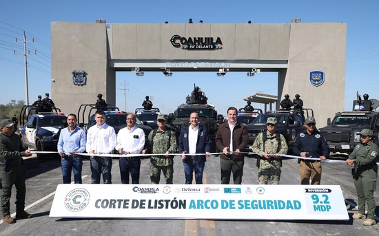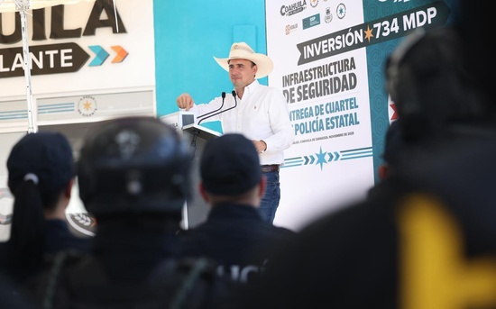 Hidalgo, Coahuila de Zaragoza; a 14 de noviembre de 2025.- Como parte de su compromiso de fortalecer la seguridad y el blindaje de Coahuila, el gobernador Manolo Jiménez Salinas entregó el arco de seguridad carretero y un cuartel para la Policía Estatal en el municipio de Hidalgo, infraestructura en seguridad en la que se invirtieron 26.6 millones de pesos.