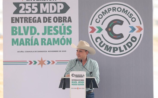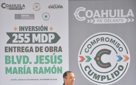 Ciudad Acuña, Coahuila de Zaragoza. 19 de noviembre de 2025.- ¡Seguimos construyendo en equipo! El gobernador Manolo Jiménez Salinas entregó el bulevar Jesús María Ramón, en Ciudad Acuña, obra en la que se invirtieron 255 millones de pesos en total y que vendrá a fortalecer la infraestructura de conectividad y a asegurar que nuestro estado mantenga su posición de liderazgo exportador en el comercio internacional.