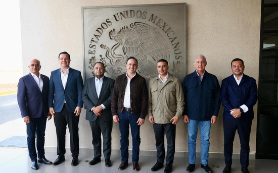 Torreón, Coahuila; 07 de enero de 2026.- El secretario de Seguridad y Protección Ciudadana, Omar García Harfuch, el gobernador de Coahuila, Manolo Jiménez Salinas y sus equipos de trabajo, sostuvieron una reunión privada con empresarios de la Laguna con el objetivo de reforzar los operativos de seguridad en la región, con énfasis en el combate a la extorsión.