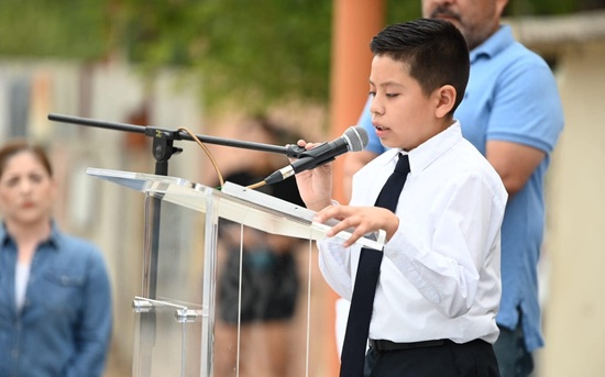 Acuña, Coah., 13 de oct. 2023.- Gracias por cumplir la palabra empeñada y garantizar nuestros derechos al agua, saneamiento e higiene afirmó el alumno Kevin Rolando González de la Escuela Primaria Anselma Vitela de Bósquez, al presidir junto al alcalde Emilio de Hoyos Montemayor la puesta en marcha de obra de rehabilitación de módulos sanitarios.