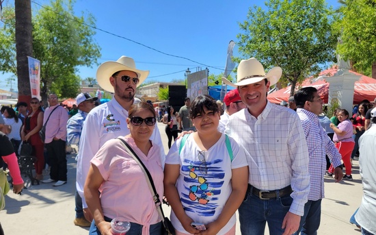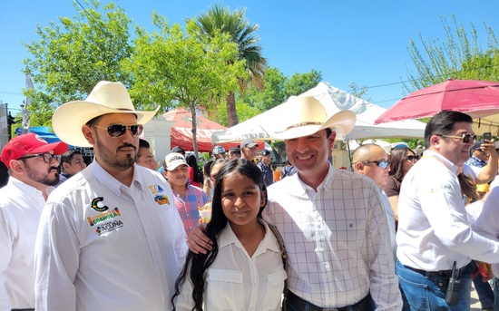 Ciudad Acuña, Coahuila. 21 de marzo del 2026.- Antes del arranque el gobernador Manolo Jiménez Salinas acompañado del presidente municipal Lic. Emilio De Hoyos hicieron un recorrido por la plaza pública Benjamín Canales saludando y atendiendo a las personas que se les acercaba.