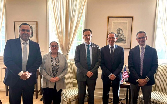 Washington, D.C., 7 de abril de 2026.- El alcalde Emilio De Hoyos Montemayor inició su gira de trabajo en la capital de Estados Unidos con una reunión en la Embajada de México, donde sostuvo un encuentro con el embajador, Esteban Moctezuma Barragán, así como con la consejera jefa de Frontera y Asuntos Especiales, Georgina Barquet.
