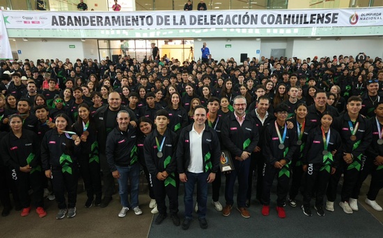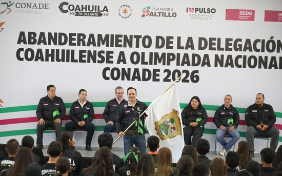 Lo anterior, durante la ceremonia de abanderamiento de la delegación coahuilense que participará en la Olimpiada Nacional 2026, evento en donde se informó que serán 790 las y los coahuilenses, entre atletas y personal técnico, que participarán en 35 disciplinas en esta llamada la máxima justa del deporte amateur en México.