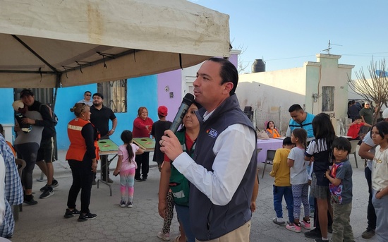 Ciudad Acuña, Coahuila. 18 de febrero del 2026. El presidente municipal Lic. Emilio De Hoyos encabeza en este momento la brigada Por Amor a Nuestra Gente, en el Fraccionamiento Noblassi.