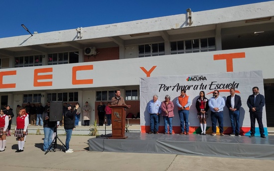 Ciudad Acuña, Coahuila. 23 de febrero del 2026.- El presidente municipal Lic. Emilio De Hoyos encabezó hoy la brigada Por Amor A Tu Escuela en el CECyTEC Francisco Villa.