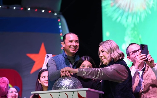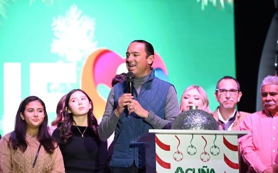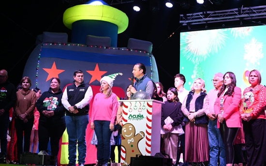 La noche cobró vida con el encendido del pino y villa navideña por el alcalde Emilio de Hoyos Montemayor y la presidenta del Sistema DIF Yahaira Romero, regidores y directores de dependencias municipales, que al conteo del 5 al 1 iluminó la macroplaza y el cielo de Acuña con bello espectáculo de pirotecnia mientras la niña Fernanda Serrano interpretaba la canción de Luz y Magia.