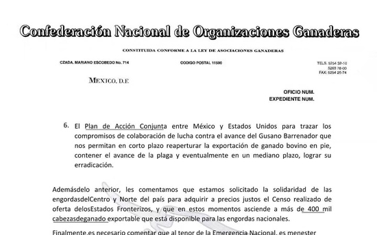 Etiquetas: Agricultura, CNOG, México, combate, ganadería, gusano barrenador