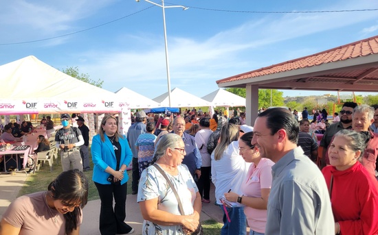 Ciudad Acuña, Coahuila. 18 de marzo del 2026.- El presidente municipal Lic. Emilio De Hoyos y su esposa, la presidenta honoraria del DIF Municipal Acuña encabezan la Feria de la Mujer en la plaza sur del fraccionamiento Fundadores.