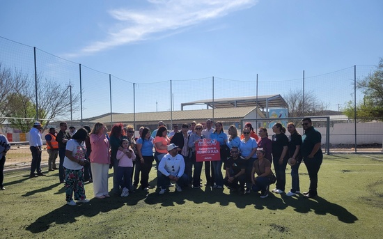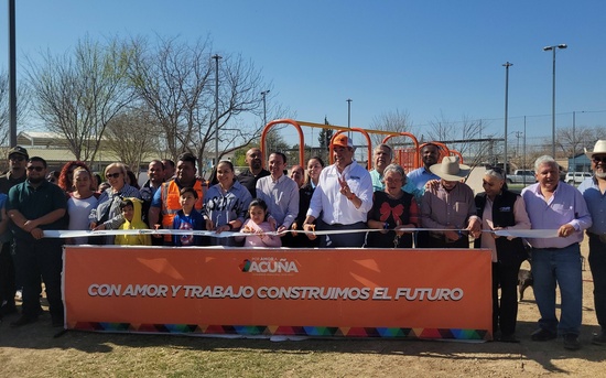 Ciudad Acuña, Coahuila. 27 de febrero del 2026.- El presidente municipal Lic. Emilio De Hoyos continuó hoy con la entrega de plazas renovadas en el marco del programa Por amor a mi plaza, en esta ocasión fue entregada para el disfrute de los vecinos, la plaza y cancha deportiva del Fraccionamiento Valle Verde.