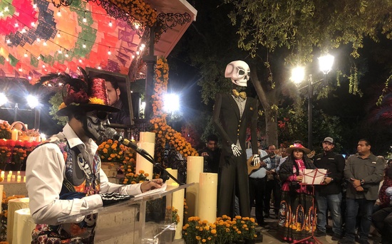 Hoy se abrió al público un Altar de Muertos monumental dedicado a Adán Canto, este altar ocupa todo el kiosko de la plaza principal Benjamín Canales y estará abierto al público varios días.